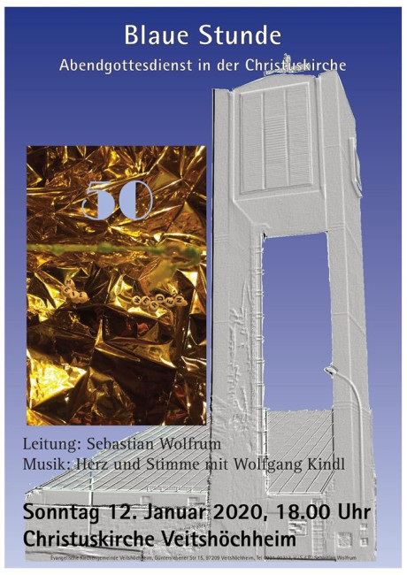 Im Januar fand bereits die 50. Blaue Stunde unserer Christuskirche statt, mit Gold, Schokolade, und allem, was sonst noch so gut tut, wie es in der Ankündigung hieß. Blaue Stunde, das heißt, sich einmal im Monat an einem Sonntag, abends ab 18:00 Uhr, Zeit zu nehmen, für eine Begegnung mit Gott in einer besonderen Atmosphäre.