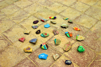 Auch in diesem Jahr gab es vom Jugendausschuss der Christuskirche einen Gruß an die Konfirmandinnen und Konfirmanden. Dafür sammelten die Jugendlichen kleine Bruchsteine auf der Baustelle der Christuskirche und gestalteten diese mit verschiedenen Farben und Formen.